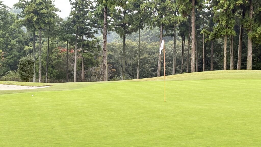 ワングリーンで大きく、グリーンの傾斜も割とあるのでパット数はなかなか縮まりませんでした。(がっつり36パットしました笑)